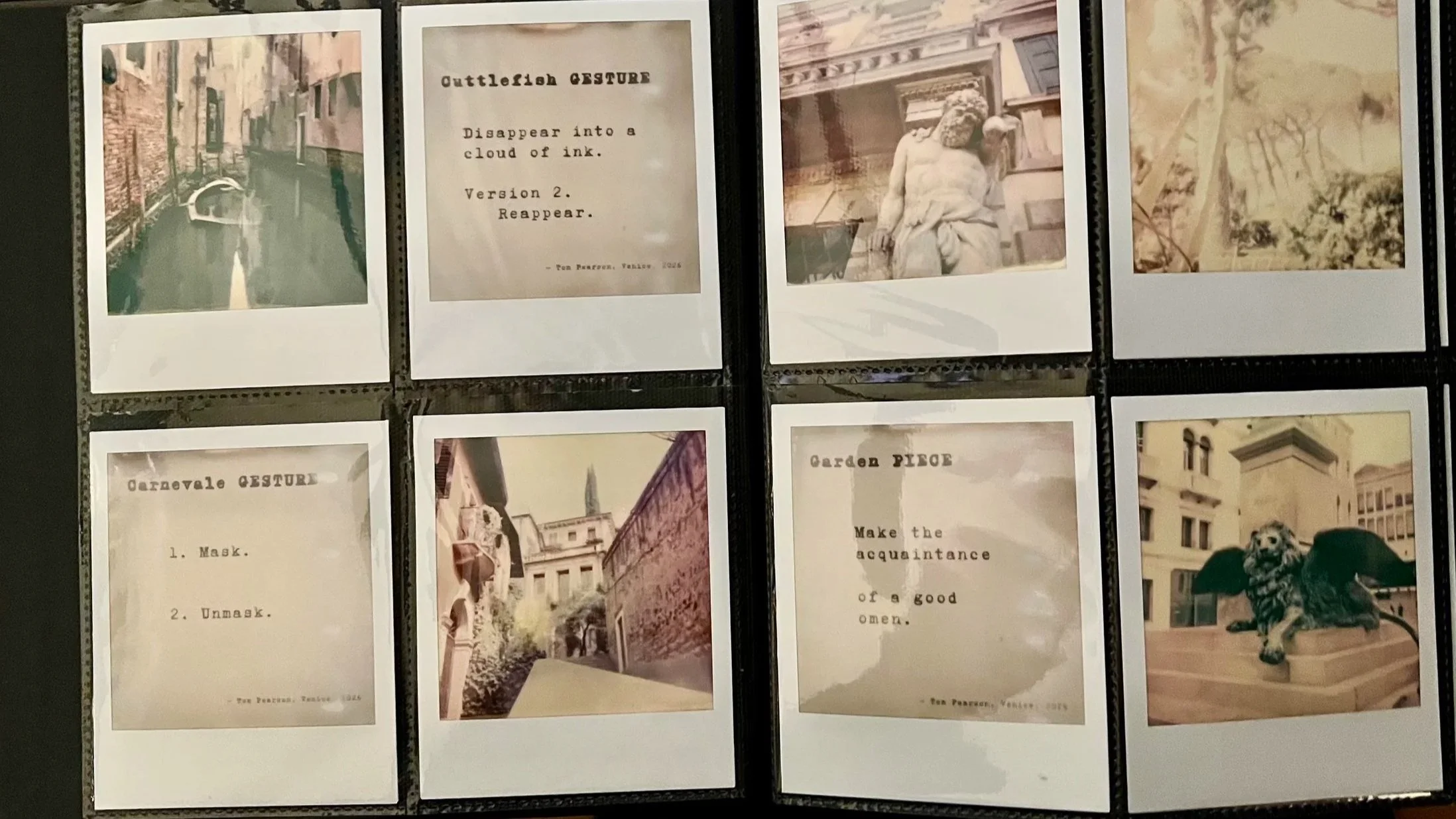 Inverno: Gestures for Rising Waters is a work-in-process where the process itself is the work. Taking inspiration from Fluxus scores and prompts, and blending them with his own sense of immersive scenario-building, Tom Pearson is crafting a series of invitations and reveals that will welcome participants into acts of co-creation around themes of memory, environment, and activism. Focused on climate related issues, winter dormancy, and tidal patterns of the Veneto, the work situates itself in Venice during the Acqua alta (high water) and Carnevale seasons, where Tom will be an artist-in-residence at the Emily Harvey Foundation in February and March, 2026.
